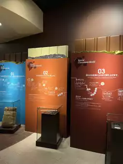 展览区运用照片、模型和视频来介绍巧克力的历史,让儿童和成人都能直观地理解。可可豆的香气和巧克力相关的配件也在这里展示,只需一眼,就能将您带入巧克力的世界。在深入了解巧克力之后,您可以在咖啡馆或商店品尝真正的巧克力,获得真正寓教于乐的体验。在这个特别的区域,您可以用五感体验巧克力甜蜜而迷人的故事。