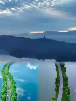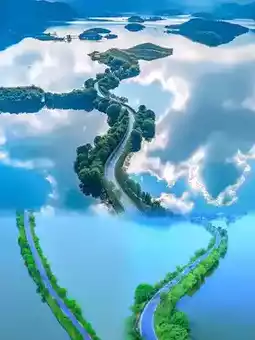 1. 平田湖天路:晴天下,水上公路的航拍照片美不胜收。2