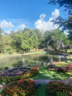 花园内有一个池塘,黑白相间的鹅群在此迎接游客。皇家项目还设有纪念品商店、餐厅和饮品店。门票为每人20泰铢。📍📍