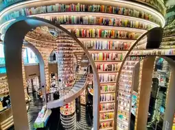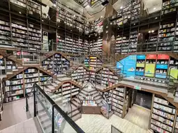 另一家线上书店重庆钟书阁,巧妙地运用镜面反射作为视觉延伸,将原本就宽敞的423平方米空间无限放大。钟书阁在全国各地均设有分店,重庆这家分店位于杨家坪中地广场三楼,乘坐地铁2号线即可轻松抵达。