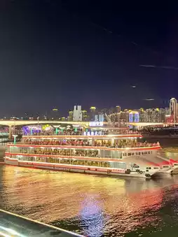 我的评价是:重庆的夜晚简直美得像仙境一般。如果你正在计划行程,一定要预订两江游船之旅,感受这座城市夜晚的璀璨光芒!🚢✨