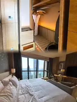 必住之选:云景河景套房!🌉落地窗将两条河流交汇的壮丽景色尽收眼底🌊,床铺上的丝绸刺绣描绘着《雾夜故事》🌃——让您瞬间沉浸于8D山水梦境~🛌浴室采用白玉墙面和智能浴缸🛀,一边泡澡一边欣赏缆车在江面上缓缓穿梭,简直完美~🚠 起居室配备茶具🍵,佐以沱茶和麻辣鸡块小吃——就连白日梦都仿佛置身江畔童话~📚 智能语音助手甚至还会播报红崖洞灯光秀的时间!🎆