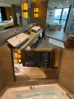 早餐提供新鲜制作的重庆面条和麻辣馄饨🍜——地道川味,不容错过!🌶️ 中餐厅主厨精心打造“云河宴”🍴,将麻辣血豆腐与分子冰冻完美融合~🍧 下午茶以彩色玻璃托盘盛装川式点心🍰,美轮美奂,令人赏心悦目!✨ 客房迷你吧免费供应🍹,天府可乐和磁器口扭扭薯条应有尽有~