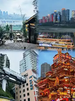 重庆位于中国西南地区,长江与嘉陵江交汇处。它素有“山城”、“雾都”、“火锅之都”的美誉,从成都乘坐高铁仅需1.5小时即可到达,并被网友誉为“现实版赛博朋克”!