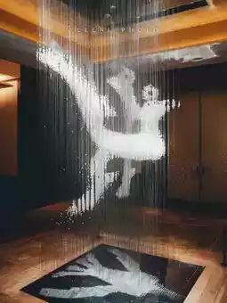 4. 三楼丽晶阁,悬挂水晶制成的青铜鸟形醒酒器非常独特