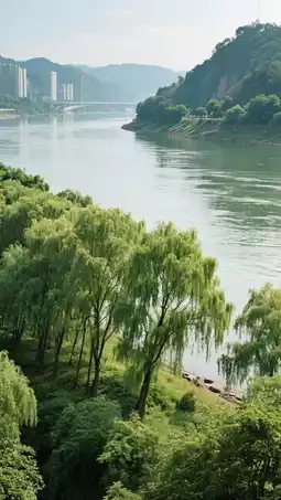 (站在南滨路河边的长椅上,夕阳洒在河面上,我转身微笑)