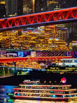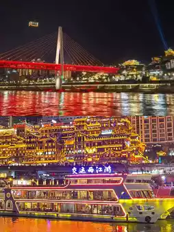双江夜游是重庆夜景的灵魂。灯光、江水与城市交相辉映,定会让您惊叹于“不夜城”的魅力!🌃