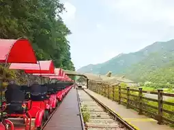 这次我们为大家介绍位于春川的江村铁路自行车(铁路公园),距离首尔仅约1.5小时车程,绝对是短途一日游的完美选择。废弃的旧铁路如今已成为热门观光景点,沿途可以欣赏到北汉江和美丽的群山景色,以及各种主题隧道,保证让你玩得开心又放松🥰🥰!