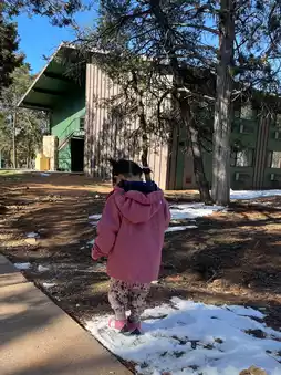 尽管旅途中的种种不便让我们抵达时筋疲力尽,但亚瓦派旅馆的小木屋却非常舒适。第一晚拿到房卡并找到房间后,大家都睡得很香。第二天早上,拉开窗帘,我们惊喜地发现窗外景色美不胜收。前一天晚上,由于没有光污染,我们根本不知道周围的景色是什么样子!外面尚未融化的积雪让孩子们兴奋不已,大人和孩子们都迫不及待地想要开始他们的科罗拉多大峡谷探索之旅。早上,你可以在亚瓦派旅馆附近的星巴克吃点东西,但要做好心理准备:这里的食物价格昂贵,而且味道一般。就连星巴克的味道都和其他地方不一样!这证明我们朋友建议多带些食物的建议非常正确!