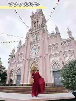 岘港大教堂 从TAN.COFFEE步行大约20分钟即可到达。岘港大教堂也是一个非常热门的拍照地点。粉红色的教堂非常上镜。教堂大门下午4:30后关闭,所以建议早点去。另外,如果正门在下午4:30关闭,也可以从后门进入,所以即使正门关闭也不要失望👍