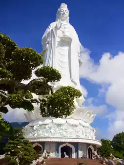 岘港是越南著名的海滨度假城市,充满迷人风情,拥有众多美丽的旅游景点。其中之一便是位于岘港北部山顶的灵应寺,它是岘港最大的寺庙,也是这座城市人民精神的中心。寺内供奉着越南最大的白色观音像。这座白色水泥观音像背靠山峦,面向大海,守护着出海捕鱼的渔民。寺庙的钟声与海浪声交相辉映,为水手们带来平静和鼓励。此外,灵应寺也是岘港著名的寺庙,每年吸引着来自世界各地的数百万游客。📍