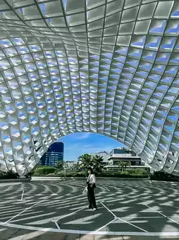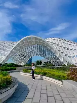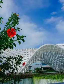 APEC公园——岘港APEC公园是越南岘港的另一处地标,完美融合了艺术、现代与自然。这里是放松身心、欣赏艺术和拍照留念的好去处。如果您正在寻找酷炫的拍照地点,千万不要错过这里。其引人注目的建筑设计采用坚固的金属结构,以弯曲的波浪形图案呈现。据说这些图案像空中的风筝,但我们觉得它们更像海浪!😆 公园造型独特,远观即可辨认。周围还有喷泉和绿植,营造出郁郁葱葱、绿树成荫的氛围。公园下方设有会议室和展览空间。免费入场。您可以乘坐Grab或出租车前往。我们实际上是步行前往的,但公园离龙桥并不远。我们从龙头走到龙尾,步行一小段路就到了APEC公园。
