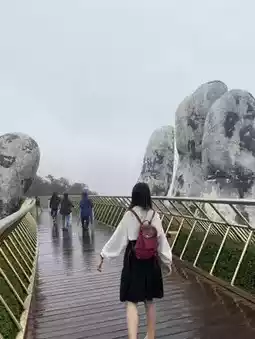 从岘港到巴拿山,用Grab打车很方便。我们在那里住了一晚,感觉很棒!可以通过Trip.com预订。那里的氛围很好,非常适合和朋友或伴侣一起度过夜晚。晚上散步放松也很不错。建议早起,在人潮涌动之前乘坐缆车前往金桥。