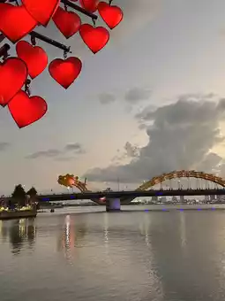 岘港情人桥位于汉江畔,是当地情侣和游客的浪漫地标。桥对面夜晚灯火通明,是漫步的理想之地。许多人会在桥栏上挂上爱情锁,留下爱情的印记。天气晴朗时,建议在黄昏时分前往,欣赏日落和市中心的景色,非常惬意。市中心的河岸在夜晚热闹非凡,您可以沿着河边漫步到附近的酒吧或餐厅,感受岘港独特的夜生活。