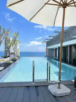 酒店顶楼有个可以欣赏海景的泳池,不过离房间有点远。🏖️