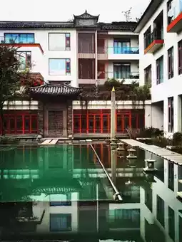 在白墙灰瓦的中国式轮廓中,嵌入了玻璃阳台和木质线条的现代表达。飞檐翘角的古韵与透明玻璃的清澈交融,仿佛时间在此轻轻打了个结。漫步其中,每一眼都是一幅画——绿色的瓦片如同鳞片,在晴空下静静闪耀;玻璃的倒影中,云卷云舒,花开凋零,和谐共舞。