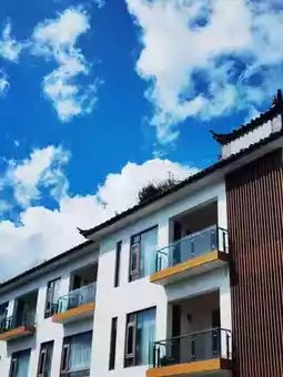 晴朗的日子里,这里的美景被放大到极致。湛蓝的天空如棉絮般洁白,阳光洒落在白墙上,波光粼粼的池面。光影交错间,整个庭院熠熠生辉。坐在阳台的藤椅上,望着苍山在云层中若隐若现,聆听着微风拂过花树的轻柔声响,你会真正体会到“宁静时光”的真谛。