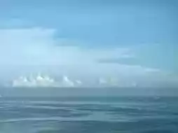 🌊 清晨,海边碧空如洗,云朵飘浮