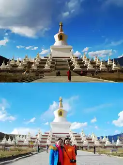 白塔:稻城的地标性建筑,也是藏传佛教的象征。主塔高耸雄伟,周围环绕着108座小塔,形成壮观的塔林。🌟
