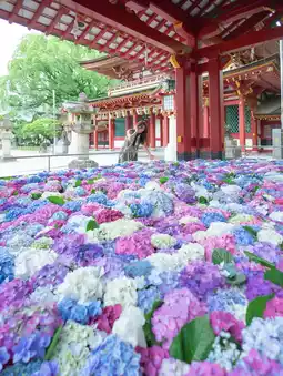 每年绣球花盛开的季节,池中会漂浮着绣球花,构成一幅迷人的花海。