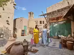 第五天:漫步阿法迪历史街区 -> 欣赏迪拜河畔美景 -> 在朱美拉公共海滩放松身心 -> 探索朱美拉古城的神秘魅力 -> 登上哈利法塔,饱览迪拜全景🌇。