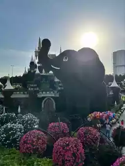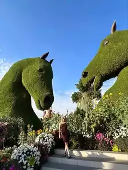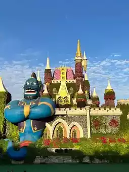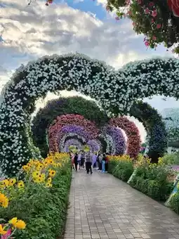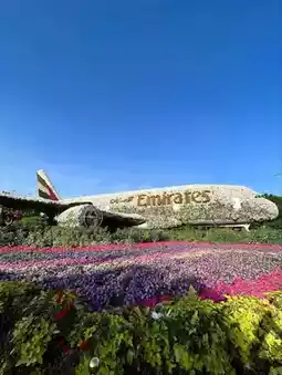 这座季节性花园(11月至次年4月开放🌞)遍布着巨型花卉雕塑——从心形拱门❤️🌸到完全被鲜花覆盖的真人大小的阿联酋航空A380客机🛫!你还能看到迪士尼人物🌟、风车🌬️和色彩缤纷的小径,是拍摄梦幻照片的绝佳地点📸。🌼