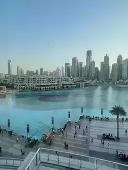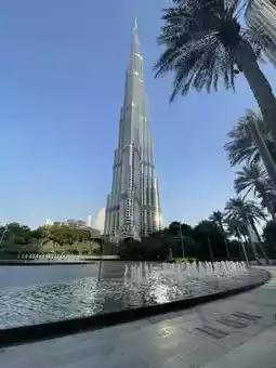 - 从迪拜喷泉一侧拍摄哈利法塔,尽享摩天大楼的壮丽景色