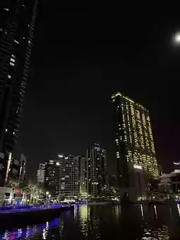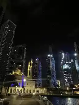 日落之后,迪拜码头摇身一变,成为璀璨夺目的奇观。我漫步在滨水长廊,欣赏着豪华游艇,看着摩天大楼在夜空下熠熠生辉。现代建筑、平静的水面和活力四射的夜生活完美融合,造就了这片迷人的都市绿洲。✨
