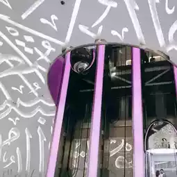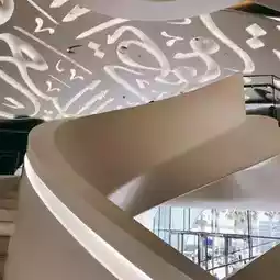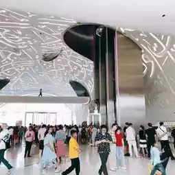 银色的弧形外墙镌刻着阿拉伯书法,象征着“未来无限”的理念。