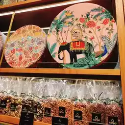 • 玻璃柜里摆放着五彩缤纷的椰枣