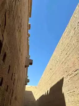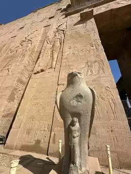 #假期行程 位于埃及阿斯旺省的埃德夫神庙是埃及保存最完好的神庙之一,供奉着鹰神荷鲁斯。其雄伟的城墙、高耸的塔门和精美的雕刻展现了古埃及的艺术造诣和虔诚的宗教信仰。漫步于神庙之中,游客可以探索宏伟的大厅、圣殿和礼拜堂,欣赏上面精美的象形文字,这些文字讲述着神话故事、宗教仪式和法老时代的历史。