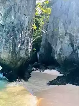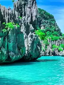 位于爱妮岛巴奎特湾中心地带的大泻湖,是大自然鬼斧神工雕琢的静谧奇景。划着皮划艇穿过狭窄的入口,高耸的石灰岩峭壁环绕四周,守护着一片深邃如镜的湖水,阳光照射下,湖水由翡翠绿变为碧蓝。