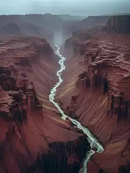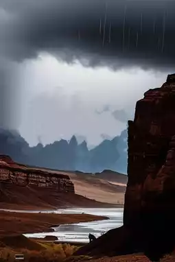 峡谷两侧的峭壁巍峨耸立,在雨雾的映衬下更显雄伟神秘。雨水冲刷着植被,增添了一抹绿色。偶尔有鸟儿飞过,鸣叫声在山谷间回荡。