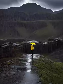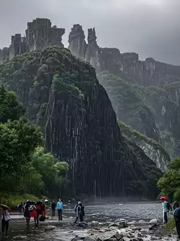 雨水沿着岩石的纹理流淌,如同岁月留下的泪痕。山谷小径泥泞不堪,却丝毫没有浇灭旅人的热情。撑着伞,身影在雨中时隐时现。雨水汇聚成溪流,潺潺流淌,奏响一曲自然的交响乐。