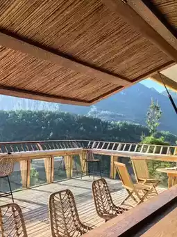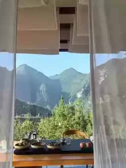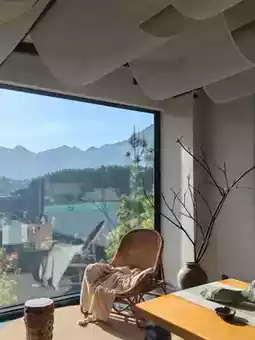 阳光充足的餐厅宽敞明亮,让您在用餐的同时欣赏山景。
