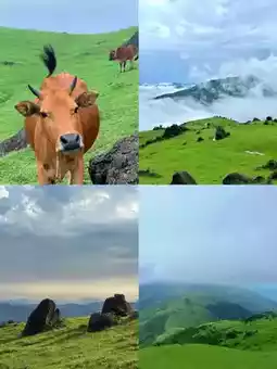 2. 独特的生态画卷:成群的牛群在高山草甸上悠闲地吃草🐄,时而抬头,时而低头咀嚼青草,为这片宁静的荒野增添了生机。人、动物与自然和谐共存,构成了一幅令人叹为观止的生态杰作🖼。3