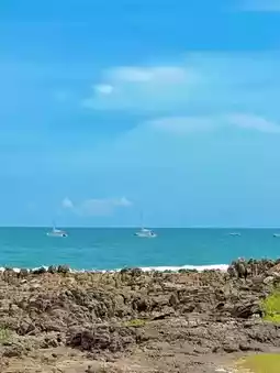 沙湾位于防城港白龙半岛的顶端,三面环海,礁石与沙滩交相辉映,形成独特的景观。沙滩绵延约1公里,沙质细腻厚实,能见度高,呈现出宁静而壮丽的海岸风光。