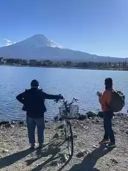 在河口湖站附近的自行车店租一辆普通自行车。24小时租金约为3,000日元至5,000日元,具体价格取决于自行车店。