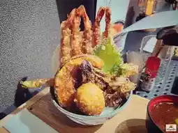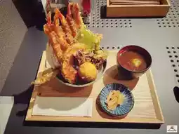 餐厅位于大石公园停车场正前方。餐厅提供种类丰富的菜肴,所有菜品均为套餐,价格实惠。招牌菜是炸猪排天妇罗盖饭,盛放在一个大碗中,分量十足。碗里满满都是外酥里嫩的大炸虾,搭配各种蔬菜和炸物。一个外酥里嫩的大煎蛋,淋上甜咸酱汁,配上香喷喷的日本米饭。此外,还附赠浓郁的味噌汤和腌制小菜,美味可口。📍