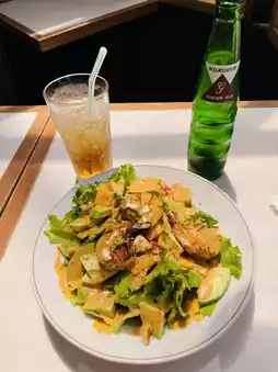 即使是小份沙拉也很丰盛,里面有三只大虾、牛油果和芝士🥗。