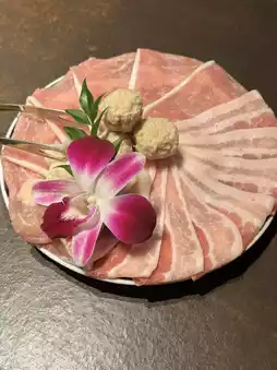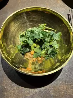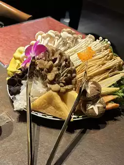 服务员端来了蘑菇和蔬菜,并告诉我先把蘑菇放进锅里熬蘑菇汤。 😊