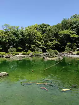 掩映在绿荫中的茶亭更是亮点所在,完美诠释了日本传统美学的精髓。静静地坐在池塘边,看着锦鲤在水中轻盈游动,我感到内心无比宁静。