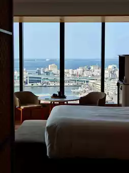 这次来福冈,我才想起来还有五张套房兑换券没用,眼看年底就要过期了。于是我用74000积分兑换了一晚福冈丽思卡尔顿酒店的住宿,然后用房间兑换券升级到了博多湾景观房。房间在20层,可以俯瞰福冈的海景,欣赏美丽的景色。