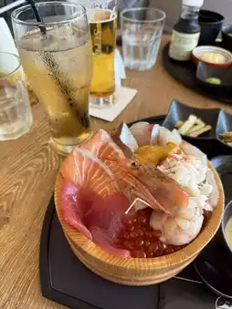 除了丼饭餐厅外,附近还有几家咖啡馆。如果您走累了或者晒太阳晒得太久,可以停下来喝杯饮料休息一下。那里的甜点和咖啡也都很不错。