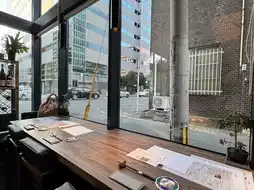 餐厅设有儿童高脚椅,中间则是岛式座位。所有窗户都是单排的,没有靠窗座位,所以都是四人座。