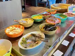 在“水上酒廊”餐厅享用自助餐,餐厅完美诠释了度假村的氛围,提供新鲜面包、水果和沙拉。菜单包括玛莎曼咖喱、玉米饼汤、日式料理以及各种以九州食材烹制的暖心菜肴。餐厅需提前预约,用餐时间为6:45、8:00和9:15,每场1小时,具体视客房供应情况而定。💰