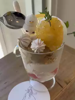 强烈推荐!清爽的柠檬芭菲,顶部点缀着蛋白酥皮,是炎炎夏日的完美选择🍋柠檬芭菲🍨 1200日元(柠檬芭菲)杯中盛放着濑户内柠檬冰沙、茶冰淇淋、柠檬皮、白巧克力碎、柠檬奶油、气泡果冻、酥粒、蛋白酥饼、柠檬干果和9we boy。每次品尝,口感和味道都会有所不同,带来惊喜和美味🍋🍨