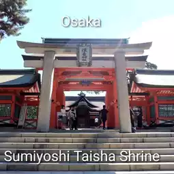 进入神社,首先映入眼帘的是一座雄伟的石雕鸟居,上面镌刻着“住吉宫”的字样,掩映在参天大树之中。这座鸟居象征着人间与神界的交界,穿过它,空气中仿佛弥漫着清新宁静的气息。高耸的古树为通往神社的道路两旁林立,阳光透过茂密的树叶洒下斑驳的光影,为这条小径增添了一丝神秘感。