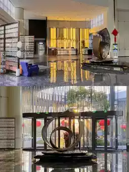 ✨ 一踏进大堂,我就被惊艳到了!高高的天花板和水晶吊灯,灯光倾泻而下,简直美得像一幅画!