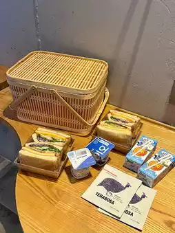 ,里面有三明治、果汁、酸奶和Terrarosa咖啡。